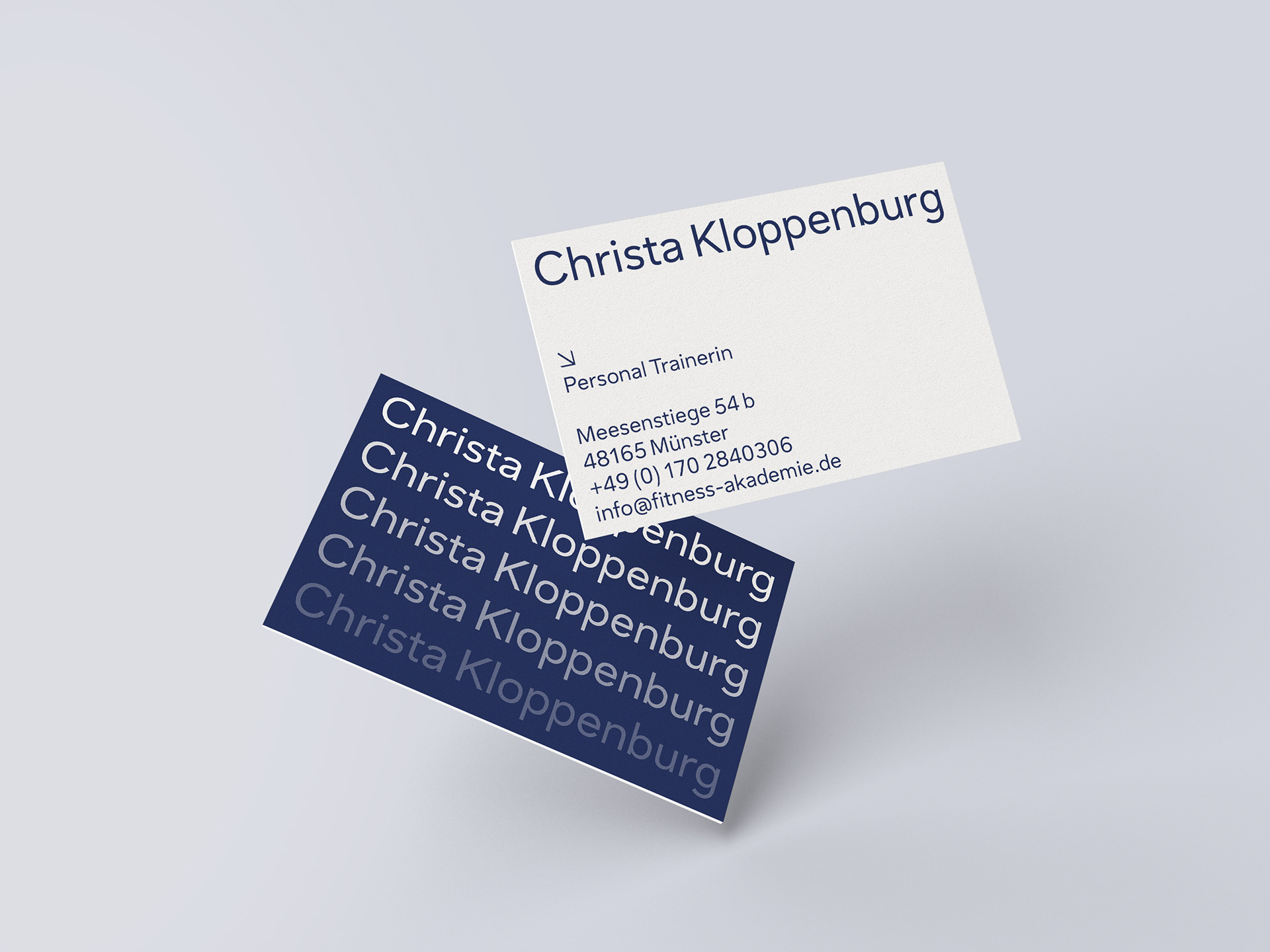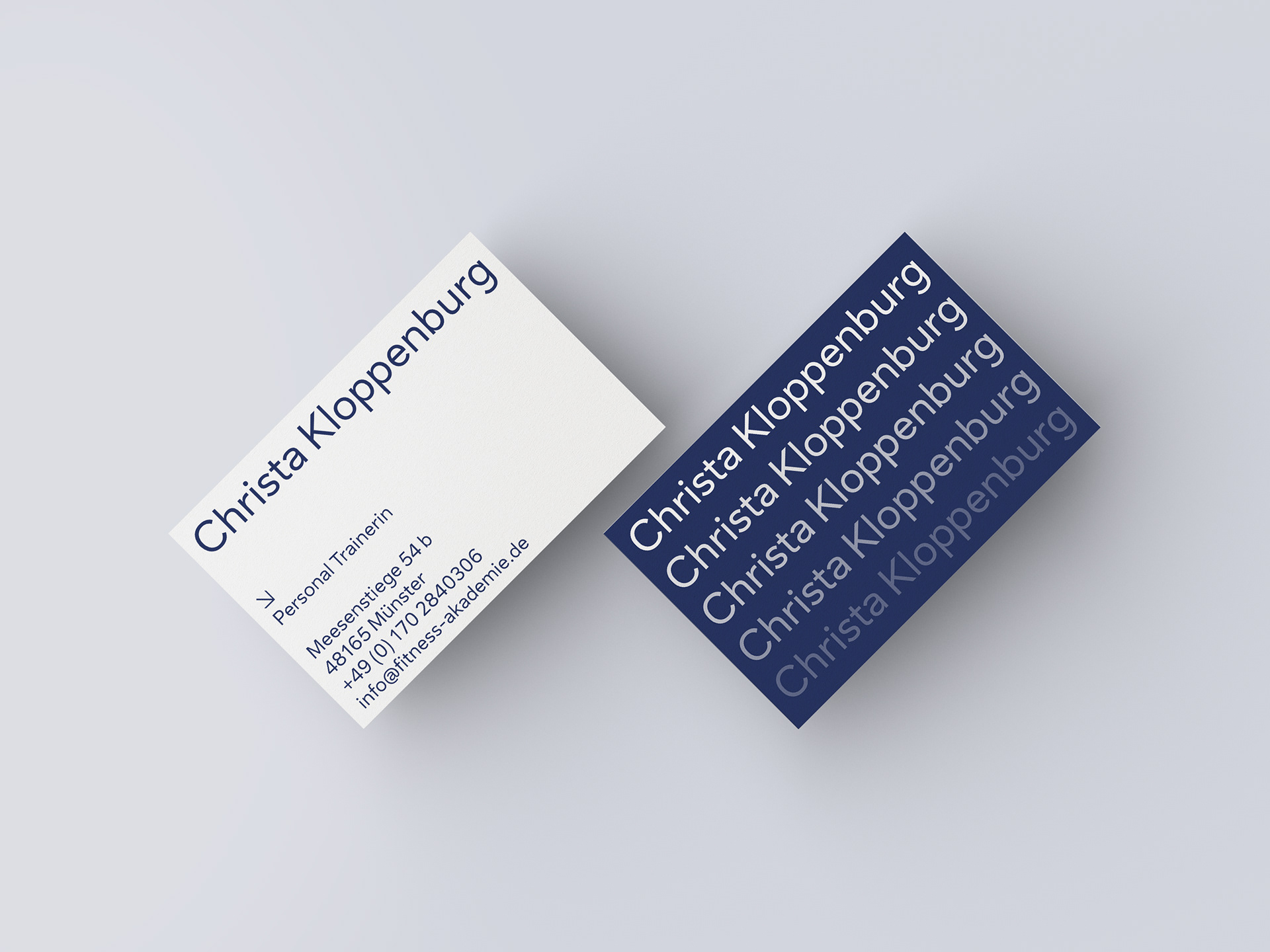 Gestaltung einer Visitenkarte für die Personal Trainerin Christa Kloppenburg von der Fitness Akademie Münster.